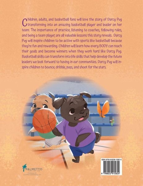 Children, adults, and basketball fans will love the story of Darcy Pug transforming into an amazing basketball player and leader on her team. The importance of practice, listening to coaches, following rules, and being a team player, are all valuable lessons this story reveals. Darcy Pug will inspire children to be active with sports like basketball because they're fun and rewarding. Children will learn how every BODY can reach their goals and become winners when they work hard like Darcy Pug. Basketball skills can transform into life skills that help develop the future leaders we look forward to having in our communities. Darcy Pug will inspire children to bounce, dribble, pass, and shoot for the stars.