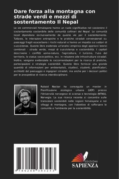 Le vie commerciali himalayane hanno un ruolo significativo nel sostenere il sostentamento sostenibile delle comunità collinari del Nepal. Le comunità locali dipendono esclusivamente da queste vie per il sostentamento. Tuttavia, le interazioni antropiche e le pratiche stradali convenzionali su paesaggi fragili esacerbano i rischi naturali e hanno un impatto sui settori di sussistenza. Questo libro evidenzia un'analisi empirica degli approcci teorici combinati - strada verde, mezzi di sussistenza e sostenibilità. I capitoli descrivono i conflitti uomo-natura, l'agricoltura, il turismo, l'uso del territorio, lo status socio-politico, ecc. in relazione alle infrastrutture stradali. Inoltre, vengono evidenziate le raccomandazioni per la ricerca di pratiche, partecipazioni e strategie sostenibili. Questo libro fornisce una grande quantità di informazioni per ambientalisti, studiosi, studenti, pianificatori, architetti del paesaggio e ingegneri stradali, ma anche per i decisori politici per le prospettive di ricerca interdisciplinare.