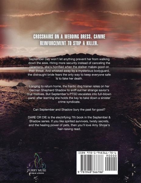 LARGE PRINT EDITION There are crosshairs on her wedding dress. To claim her happily ever after, she'll need canine reinforcement to stop a killer. September Day won't let anything prevent her from walking down the aisle. Hiring more security instead of canceling the ceremony, she's horrified when the stalker makes good on their threat. And whisked away by a mysterious bodyguard, the distraught bride fears the only way to keep everyone safe is to fake her death. Longing to return home, the frantic dog trainer relies on her German Shepherd Shadow to sniff out her strange savior's true motives. But September's PTSD escalates into full-blown panic after learning she holds the key to take down a sinister crime syndicate. Can September and Shadow bury the past for good? DARE OR DIE is the electrifying 7th book in the September & Shadow series. If you like spirited survivors, twisty secrets, and the healing power of pets, then you'll love Amy Shojai's hair-raising read. Buy DARE OR DIE for a fatal stakeout today!