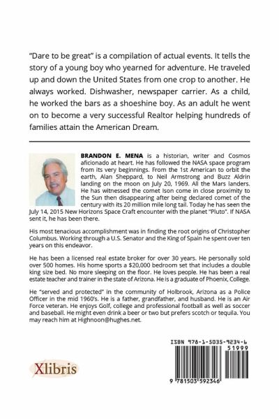 Brandon E. Mena is a historian, writer, and cosmos aficionado at heart. He has followed the NASA space program from its very beginnings, from the first American to orbit Earth, Alan Sheppard, to Neil Armstrong and Buzz Aldrin landing on the moon on July 20, 1969. All the Mars landers. He has witnessed the comet Ison come in close proximity to the Sun then disappearing after being declared comet of the century with its twenty-million-mile long tail. Today he has seen the July 14, 2015, New Horizons Space Craft encounter with the planet Pluto. If NASA sent it, he has been there. His most tenacious accomplishment was in finding the root origins of Christopher Columbus. Working through a US senator and the king of Spain, he spent over ten years on this endeavor. He has been a licensed real estate broker for over thirty years. He personally sold over five hundred homes. His home sports a twenty-thousand-dollar bedroom set, which includes a double-king-size bed. No more sleeping on the floor. He loves people. He has been a real estate teacher and trainer in the state of Arizona. He is a graduate of Phoenix, College. He served and protected in the community of Holbrook, Arizona, as a police officer in the mid 1960s. He is a father, grandfather, and husband. He is an air force veteran. He enjoys golf and college and professional football, as well as soccer and baseball. He might even drink a beer or two but prefers scotch or tequila. You may reach him at Highnoon@hughes.net.