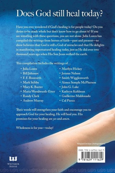 Have you ever wondered if God's healing is for people today? Do you desire to be made whole but don't know how to go about it? If you are wrestling with these questions, you are not alone. Julia Loren has compiled the writings from heroes of faith--past and present--to show believers that God is still a God of miracles and that He delights in manifesting supernatural healing today, just as He did over two thousand years ago when His Son Jesus walked the earth. This compilation includes the writings of Julia Loren, Bill Johnson, F. F. Bosworth, Mary K. Baxter, Randy Clark, Andrew Murray, Marilyn Hickey, Smith Wigglesworth, Kathryn Kuhlman, Guillermo Maldonado, and many others. Their words will strengthen your faith and encourage you to approach God for your healing. He will heal you. His promises for your healing are yes and amen. Wholeness is for you--today!