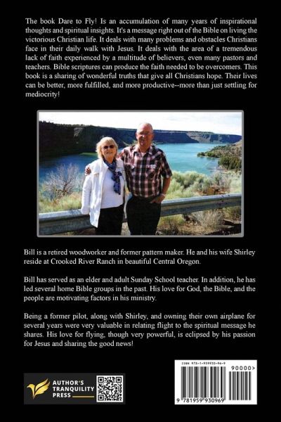 The book Dare to Fly! is an accumulation of many years of inspirational thoughts and spiritual insights. It's a message right out of the Bible on living the victorious Christian life. It deals with many problems and obstacles Christians face in their daily walk with Jesus. It deals with the area of a tremendous lack of faith experienced by a multitude of believers, even many pastors and teachers. Bible scriptures can produce the faith needed to be overcomers. This book is a sharing of wonderful truths that give all Christians hope. Their lives can be better, more fulfilled, and more productive--more than just settling for mediocrity!