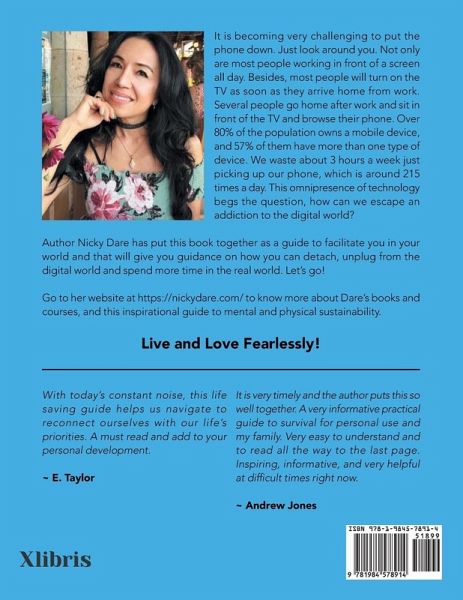 It is becoming very challenging to put the phone down. Just look around you. Not only are most people working in front of a screen all day. Besides, most people will turn on the TV as soon as they arrive home from work. Several people go home after work and sit in front of the TV and browse their phone. Over 80% of the population owns a mobile device, and 57% of them have more than one type of device. We waste about 3 hours a week just picking up our phone, which is around 215 times a day. This omnipresence of technology begs the question, how can we escape an addiction to the digital world? Author Nicky Dare has put this book together as a guide to facilitate you in your world and that will give you guidance on how you can detach, unplug from the digital world and spend more time in the real world. Let's go! Go to her website at https://nickydare.com/ to know more about Dare's books and courses, and this inspirational guide to mental and physical sustainability.