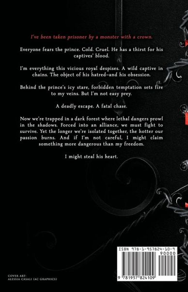 Spicy enemies to lovers fantasy romance with an HEA. I'VE BEEN TAKEN PRISONER BY A MONSTER WITH A CROWN. Everyone fears the prince. Cold. Cruel. He has a thirst for his captives' blood. I'm everything this vicious royal despises. A wild captive in chains. The object of his hatred-and his obsession. Behind the prince's icy stare, forbidden temptation sets fire to my veins. But I'm not easy prey. A deadly escape. A fatal chase. Now we're trapped in a dark forest where lethal dangers prowl in the shadows. Forced into an alliance, we must fight to survive. Yet the longer we're isolated together, the hotter our passion burns. And if I'm not careful, I might claim something more dangerous than my freedom. I might steal his heart. WARNING: This is the fourth book in a scorching hot romantasy series with explicit sexual content and language. For readers 18+ who want epic forbidden love, villain gets the girl, and 'touch her and he'll unalive you' vibes. Perfect for fans of LJ Andrews, Sarah A. Parker, Carissa Broadbent, Laura Thalassa, and Raven Kennedy. FOR CWs: Please check the author's website.