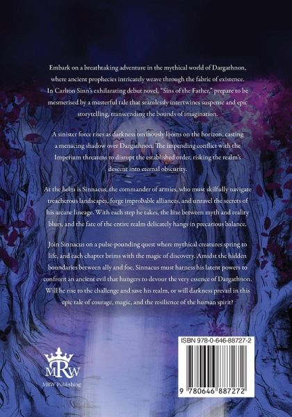 Suspenseful, epic and with incredibly entertaining storytelling, the first novel in Carlton Sinn's Dargathnon series invites you to embark on a journey where each page crackles with enchantment. For fans of mythical creatures and those yearning for an adventure-filled fantasy that leaps off the page, Embark on a breathtaking adventure in the mythical world of Dargathnon, where ancient prophecies intricately weave through the fabric of existence. In Carlton Sinn's exhilarating debut novel, "Sins of the Father," prepare to be mesmerised by a masterful tale that seamlessly intertwines suspense and epic storytelling, transcending the bounds of imagination. A sinister force rises as darkness ominously looms on the horizon, casting a menacing shadow over Dargathnon. The impending conflict with the Imperium threatens to disrupt the established order, risking the realm's descent into eternal obscurity. At the helm is Sinnacus, the commander of armies, who must skilfully navigate treacherous landscapes, forge improbable alliances, and unravel the secrets of his arcane lineage. With each step he takes, the line between myth and reality blurs, and the fate of the entire realm delicately hangs in precarious balance. Join Sinnacus on a pulse-pounding quest where mythical creatures spring to life, and each chapter brims with the magic of discovery. Amidst the hidden boundaries between ally and foe, Sinnacus must harness his latent powers to confront an ancient evil that hungers to devour the very essence of Dargathnon. Will he rise to the challenge and save his realm, or will darkness prevail in this epic tale of courage, magic, and the resilience of the human spirit?
