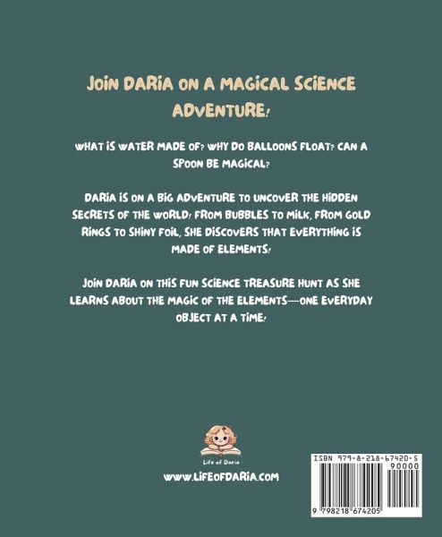Discover the magic of science with Daria! Daria is a curious and adventurous and loves to explore the world around her. But today, she's about to make an exciting discovery-everything is made of elements! From the helium in her balloon to the calcium in her milk, Daria learns how these hidden building blocks are part of her everyday life. With playful storytelling, engaging illustrations, and real science facts, Daria and the Magic of Elementsintroduces young readers to 10+ common elements in a fun and relatable way. Perfect for curious little minds, this book makes learning about chemistry exciting, simple, and magical! Join Daria on this exciting science adventure! Who knows what she'll discover next?