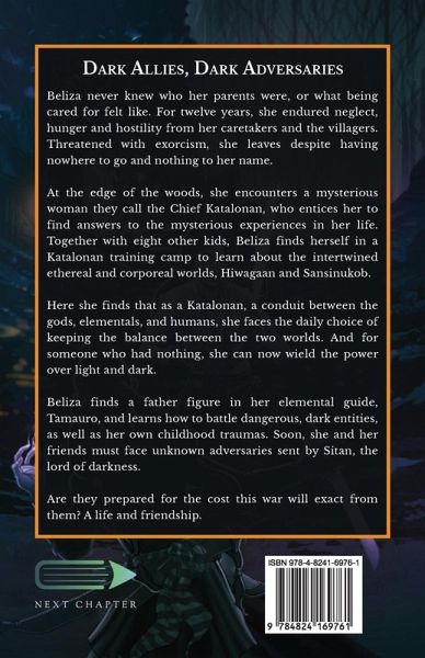 Beliza never knew who her parents were, or what being cared for felt like. For twelve years, she endured neglect, hunger and hostility from her caretakers and the villagers. Threatened with exorcism, she leaves despite having nowhere to go and nothing to her name. At the edge of the woods, she encounters a mysterious woman they call the Chief Katalonan, who entices her to find answers to the mysterious experiences in her life. Together with eight other kids, Beliza finds herself in a Katalonan training camp to learn about the intertwined ethereal and corporeal worlds, Hiwagaan and Sansinukob. Here she finds that as a Katalonan, a conduit between the gods, elementals, and humans, she faces the daily choice of keeping the balance between the two worlds. And for someone who had nothing, she can now wield the power over light and dark. Beliza finds a father figure in her elemental guide, Tamauro, and learns how to battle dangerous, dark entities, as well as her own childhood traumas. Soon, she and her friends must face unknown adversaries sent by Sitan, the lord of darkness. Are they prepared for the cost this war will exact from them? A life and friendship.