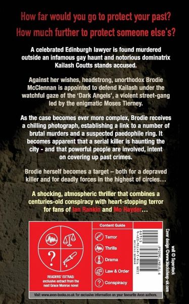 How far would you go to protect your past? How much further to protect someone else's? The start of a thrilling Edinburgh-based series starring rebellious young lawyer Brodie McLennan. A celebrated Edinburgh lawyer is found murdered outside an infamous gay haunt and notorious dominatrix Kailash Coutts stands accused. Against her wishes, headstrong, unorthodox Brodie McClennan is appointed to defend Kailash under the watchful gaze of the 'Dark Angels', a violent street-gang led by the enigmatic Moses Tierney. As the case becomes ever more complex, Brodie receives a chilling photograph, establishing a link to a number of brutal murders and a suspected paedophile ring. It becomes apparent that a serial killer is haunting the city – and that powerful people are involved, intent on covering up past crimes. Brodie herself becomes a target – both for a depraved killer and for deadly forces in the highest of circles… A shocking, atmospheric thriller that combines a centuries-old conspiracy with heart-stopping terror for fans of Ian Rankin and Mo Hayder…