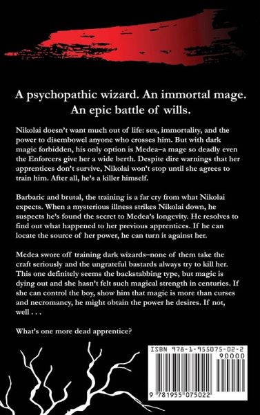 A psychopathic wizard. An immortal mage. An epic battle of wills. Nikolai doesn't want much out of life: sex, immortality, and the power to disembowel anyone who crosses him. But with dark magic forbidden, his only option is Medea-a mage so deadly even the Enforcers give her a wide berth. Despite dire warnings that her apprentices don't survive, Nikolai won't stop until she agrees to train him. After all, he's a killer himself. Barbaric and brutal, the training is a far cry from what Nikolai expects. When a mysterious illness strikes Nikolai down, he suspects he's found the secret to Medea's longevity. He resolves to find out what happened to her previous apprentices. If he can locate the source of her power, he can turn it against her. Medea swore off training dark wizards-none of them take the craft seriously and the ungrateful bastards always try to kill her. This one definitely seems the backstabbing type, but magic is dying out and she hasn't felt such magical strength in centuries. If she can control the boy, show him that magic is more than curses and necromancy, he might obtain the power he desires. If not, well . . . What's one more dead apprentice? If you enjoy dark fantasy with quirky, morally grey characters and humorous banter (but NO ROMANCE), this is the book for you!