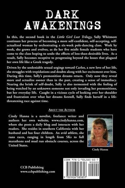 In this, the second book in the Little Girl Lost Trilogy, Sally Whitmore continues her process of becoming a more self-confident, self-accepting, self-actualized woman by orchestrating a six-week pole-dancing class. Week by week, she grows and evolves, as do her five misfit female students who have come to the class hoping to undo the effects of less-than-desirable lives. As a result, Sally becomes receptive to progressing beyond the losses that plagued her own life like a Greek tragedy. Driven by the undeniable sexual urgings toward Carlos, a new love of her life, she struggles with trepidations and doubts along with her excitement over him. During this time, Sally's premonition dreams return. Only now they reveal more and actualize sooner than in the past, creating a sense of immediacy. Nearing the brink of self-doubt, Sally is also tormented with the feeling of being watched by an unknown someone not only invading her premonitions, but her everyday life. Caught in a vicious cycle of looking over her shoulder and frustration over what her dreams foretell, Sally finds herself in a life-threatening race against time. About the Author: Cindy Hanna is a novelist, freelance writer and authors her own website, www.cindyhanna.com, where she posts a daily blog and interacts with her readers. She resides in southern California with her husband and has four children. An avid athlete, she runs races, ranging in length from 5Ks to full marathons and mud run obstacle courses, across the United States.
