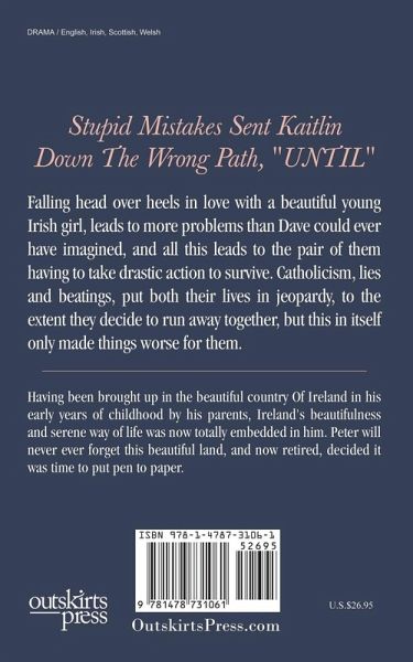 When your life is turned upside down by following a path you knew was the wrong thing to do in the first place, you have no option but to push it to one side and try to get on with your life, and this is what happened to a young man named Dave, the only difference being, Dave wasn't able to push it to one side, and so had to try and deal with the consequences. Having been offered a new job that took him in and out of Ireland, he very quickly fell in love with this beautiful country, but knew at the same time there were troubles that surrounded this pleasant land and it was these troubles that took him down a very dangerous path. Not realizing what was happening behind the scenes, he was quickly introduced to a very beautiful young Irish girl, whose beautiful charming ways he found very hard to resist, but it totally back fired on the people who had tried to put this very dangerous plan together, making the pair of them take drastic actions to stay alive. To make matters even worse for Dave, his young wife back home in England that he had two beautiful children with, committed a cardinal sin, giving Dave no option but to run away with this beautiful Irish girl Kaitlin he had first been introduced to back in Ireland. At first their plan went together very well, not at first realizing the problems they thought they had left behind in Ireland, had now well and truly landed on their doorstep again, giving Dave no option but to try again to put things right. And this in itself sent Dave into something he really hadn't really bargained for. To make matters worse for Dave, Kaitlin had indeed been hiding something very important from Dave, right from the time she was first introduced to him, leading Dave not only to be watched from inside of Ireland, but from other parts of the world as well. It all leads to the most traumatic experiences for both of them until Dave decides to take drastic actions to save what was left of this horrible experience , but now his actions were r