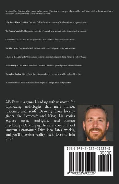 Step into a world that blurs the lines between the rational and the inexplicable, between the living and the dead, and between science and the supernatural. "Dark Corners: Tales from the Shadow Realms" offers an anthology of gripping short stories, each one a labyrinthine journey into the macabre, penned by a single master of modern dark fiction. In "Labyrinth of Lost Realities," join Detective Sarah Caldwell as she navigates an enigmatic maze appearing at crime scenes, racing against time to stop a dark alliance of rogue scientists and demonic entities from merging realities and unleashing unspeakable horrors. Discover "The Shadow's Veil," where astrophysicist Dr. Evelyn Harper and Detective James O'Connell must unravel ancient rituals to prevent a cosmic entity from tearing the fabric of existence, all while wrestling with their own inner demons. Unearth "Cosmic Dread," as Detective Ava Harper teams up with a medium and a quantum physicist to close a reality-bending labyrinth that threatens to collapse the multiverse into a nightmarish realm. Explore "The Blackwood Enigma," when Detective Sarah Caldwell and an antiquities dealer, Owen, confront their deepest fears in a subterranean labyrinth, which holds the key to unsolved crimes and a hidden, ancient evil. Traverse "Echoes in the Labyrinth," where Detective Sarah Whitaker and journalist Mark solve a cosmic conspiracy involving celestial beings feeding off human emotions, set in the haunting backdrop of Hollow Creek. Delve into "The Gateway of Lost Souls," as investigative journalist Daniel and Detective Emily Shaw navigate a spectral labyrinth to rescue lost souls and battle their own skepticism. Finally, investigate "Unraveling Reality," in which Detective Laura Mitchell and scholar Edward Kane join forces to halt a cosmic event that could merge the realms of the supernatural and the human. Confront your deepest fears and ethical dilemmas through a suspenseful tapestry of horror, crime, science fiction, and moral ambiguity. With each page, "Dark Corners: Tales from the Shadow Realms" offers a cerebral and heart-pounding experience that challenges the boundaries of reality. Are you ready to step into the unknown?