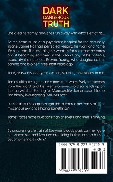 She killed her family. Now she's run away with what's left of his… As the head nurse at a psychiatric hospital for the criminally insane, James Hall had perfected keeping his work and home life separate. The last thing he wants is for someone he cares about becoming ensnared in the web of any of his patients, especially the notorious Evelyne Young who slaughtered her parents and brother three short years ago. Then, his twenty-one-year-old son, Maurice, moves back home. James' ultimate nightmare comes true when Evelyne escapes from the ward, and his twenty-one-year-old son ends up on the run with her. Fearing for Maurice's life, James scrambles to find him by investigating Evelyne's past. Did she truly just snap the night she murdered her family, or is her mysterious ex-fiancé hiding something? James faces more questions than answers, and time is running out. By uncovering the truth of Evelyne's bloody past, can he figure out where she and Maurice are hiding in time to stop his son become her next victim?