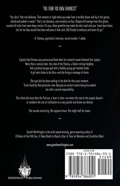 T"... intense, exciting, and nerve-wracking ... taut, tense, and ultimately explosive. A fantastic read not just for science fiction aficionados but for all lovers of adventure." --Readers' Favorite "Dark Dweller is that rare beast of hard sci-fi that can pull off high-end concepts, but also entertain the reader with tension and strong set pieces." --SFBook Review Captain Kara Psomas was pronounced dead when her research vessel slammed into Jupiter. More than a century later, the crew of the Paralus, a helium mining freighter, find a pristine escape pod with a healthy young girl nestled inside. A girl who claims to be Kara-and she brings a message of doom. She says she has been waiting in the dark for that exact moment. To be found by that particular crew. Because an ancient cosmic being has tasked her with a sacred responsibility. She claims she must alter the Fulcrum, a lever in time-no matter the cost to the people aboard-or condemn the rest of civilization to a very painful and drawn-out demise. She sounds convincing. She appears brave. She might well be insane.