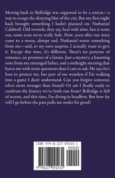 Moving back to Bellridge was supposed to be a retreat-a way to escape the dizzying blur of the city. But my first night back brought something I hadn't planned on: Nathaniel Caldwell. Old wounds, they say, heal with time, but it turns out, some scars never really fade. Now, years after our story came to a messy, abrupt end, Nathaniel wants something from me-and, to my own surprise, I actually want to give it. Except this time, it's different. There's no pretense of romance, no promises of a future. Just a mystery, a haunting note from my estranged father, and a midnight meeting that leaves me with more questions than I care to ask. He says he's here to protect me, but part of me wonders if I'm walking into a game I don't understand. Can you forgive someone who's more stranger than friend? Or am I finally ready to confront the history we've both run from? Bellridge is full of secrets, and this time, I'm diving in headfirst. But how far will I go before the past pulls me under for good?