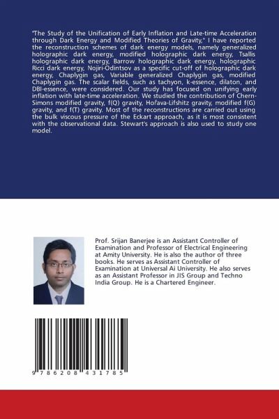 "The Study of the Unification of Early Inflation and Late-time Acceleration through Dark Energy and Modified Theories of Gravity," I have reported the reconstruction schemes of dark energy models, namely generalized holographic dark energy, modified holographic dark energy, Tsallis holographic dark energy, Barrow holographic dark energy, holographic Ricci dark energy, Nojiri-Odintsov as a specific cut-off of holographic dark energy, Chaplygin gas, Variable generalized Chaplygin gas, modified Chaplygin gas. The scalar fields, such as tachyon, k-essence, dilaton, and DBI-essence, were considered. Our study has focused on unifying early inflation with late-time acceleration. We studied the contribution of Chern-Simons modified gravity, f(Q) gravity, Horava-Lifshitz gravity, modified f(G) gravity, and f(T) gravity. Most of the reconstructions are carried out using the bulk viscous pressure of the Eckart approach, as it is most consistent with the observational data. Stewart's approach is also used to study one model.