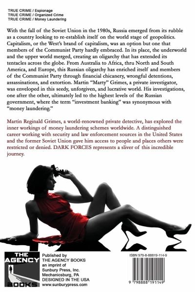 Martin Reginald Grimes is a renowned private investigator who has devoted a career investigating domestic and transnational organized crime. His investigations took him into the inner sanctums of Cosa Nostra, Latin and South American cartels, and Russian criminal networks synonymous with the KGB. Through his relationships with Russian oligarchs, Grimes is privy to some of the most intimate details of cross-border criminal enterprises, which inevitably involve money laundering, political corruption, extortion, and murder. DARK FORCES is a glimpse into this diabolical and duplicitous world, the results of which will be felt globally for many decades and likely forever.