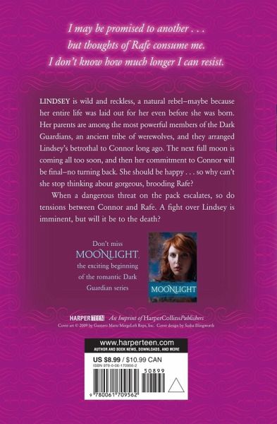 The second installment in fan-favorite author Rachel Hawthorne's Dark Guardian paranormal romance series about werewolves. Lindsay is promised to Connor . . . but thoughts of Rafe consume her. How much longer can she resist? Lindsey is wild and reckless, a natural rebel--maybe because her entire life was laid out for her even before she was born. Her parents are among the most powerful members of the Dark Guardians, an ancient tribe of werewolves, and they arranged Lindsey's betrothal to Connor long ago. The next full moon is coming all too soon, and then her commitment to Connor will be final--no turning back. She should be happy . . . so why can't she stop thinking about gorgeous, brooding Rafe? When a dangerous threat on the pack escalates, so do tensions between Connor and Rafe. A fight over Lindsey is imminent, but will it be to the death?