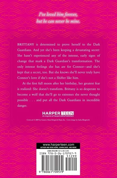 Brittany can't understand why she's not feeling the intense beginnings of transformation all the other Dark Guardians have experienced when they first became wolves. She's just desperate enough to become a wolf that she'll go to extremes and put all the Dark Guardians in incredible danger.