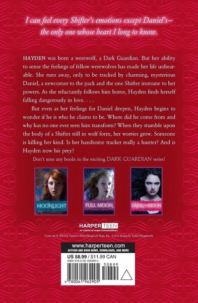 The fourth installment in fan-favorite author Rachel Hawthorne's Dark Guardian paranormal romance series about werewolves! Hayden, a Dark Guardian, can feel every Shifter's emotions except Daniel's--the only one whose heart she longs to know. Hayden's ability to sense the feelings of fellow werewolves has made her life unbearable. She runs away, only to be tracked by charming, mysterious Daniel, a newcomer to the pack and the one Shifter immune to her powers. As she reluctantly follows him home, Hayden finds herself falling dangerously in love. . . . But even as her feelings for Daniel deepen, Hayden begins to wonder if he is who he claims to be. Where did he come from and why has no one ever seen him transform? When they stumble upon the body of a Shifter still in wolf form, her worries grow. Someone is killing her kind. Is her handsome tracker really a hunter? And is Hayden now his prey?