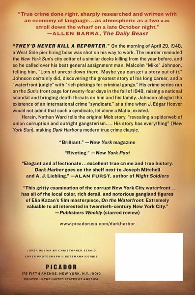 "They'd never kill a reporter...." On the morning of April 29, 1948, a West Side pier hiring boss was shot on his way to work. The murder reminded the New York Sun's city editor of a similar docks killing from the year before, and so he called over his best general assignment man, Malcolm "Mike" Johnson, telling him, "Lots of unrest down there. Maybe you can get a story out of it." Johnson certainly did, discovering the greatest story of his long career, and a "waterfront jungle" with "rich pickings for criminal gangs." His crime series ran on the Sun's front page for twenty-four days in the fall of 1948, raising a national scandal and bringing death threats on him and his family. Johnson alleged the existence of an international crime "syndicate," at a time when J. Edgar Hoover would not admit that such a syndicate, let alone a Mafia, existed. Herein, Nathan Ward tells the original Mob story, "revealing a spiderweb of union corruption and outright gangsterism....His story has everything" ( New York Sun), making Dark Harbor a modern true crime classic.