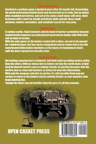 A Brave New World---- Survival is a perilous game a hundred years after the bombs fell, devastating the world and leaving behind death and destruction in its wake. But no matter what, mankind perseveres, and out of the ashes small towns still exist, ruled by barons with a taste for wealth and blood, while outside these small enclaves, slavers, marauders, and cannibals search for easy prey. ----Past Mistakes---- A century earlier, Hank Summers and his band of warrior survivalists became inadvertently trapped in an underground government bunker with little food and no hope of escape. With the only egress to the bunker sealed with a timer, one not to be opened for a hundred years, the four weary companions had no choice but to use the experimental hibernation chambers, in the hopes of remaining in stasis until the doors opened ten decades later. ----Blood and Death---- But nothing experimental is foolproof, and Hank ends up waking weeks earlier than the others. With no choice but to venture out into the world alone, to find food for himself and his soon-to-waking-friends, he quickly discovers that the world is just as cruel and barbaric as before he went into hibernation. With only his weapons and wits to survive, it's still possible Hank may not survive to return to the bunker and his waiting friends, as new enemies soon begin hunting him. Though the future may be deadlier than the past, it's all that remains.