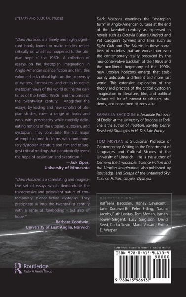 "Dark Horizons is a timely and highly significant book bound to make readers reflect critically on what has happened to the utopian hope of the 1960s. A collection of essays on Anglo-American science fiction and film and the dystopian imagination superbly edited by Raffaella Baccolini and Tom Moylan, this volume sheds critical light on the propensity of many writers, filmmakers, and critics to depict dystopian views of the world during the dark times of the 1980s, 1990s, and the onset of the twenty-first century. Most of the essayists are leading scholars of utopian studies, and they cover a range of topics and works with perspicacity while carefully delineating notions of the utopian, eutopian, and dystopian. Altogether the essays constitute the first major attempt to come to terms with contemporary dystopian literature and film and to suggest alternative and critical readings that paradoxically reveal the hope of pessimism and skepticism." -- Jack Zipes, University of Minnesota