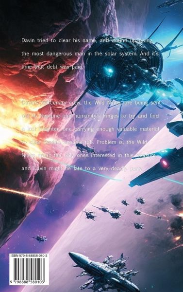 Davin tried to clear his name, and wound up owing the most dangerous man in the solar system. And it's time that debt was paid. Davin's mercenary crew, the Wild Nines, are being sent out to Neptune and humanity's fringes to try and find a lost freighter, one carrying enough valuable material to clear Davin's sizeable tab. Problem is, the Wild Nines aren't the only ones interested in this treasure, and Davin might be late to a very deadly party. Dark Ice is the second novel in The Wild Nines series, an action-packed space opera where humanity's expansion through the solar system is driven by blood, sweat, and greed. If you're looking for a planet-spanning adventure with characters as willing to crack a joke as blast an enemy, pick up Dark Ice today and step into the story!