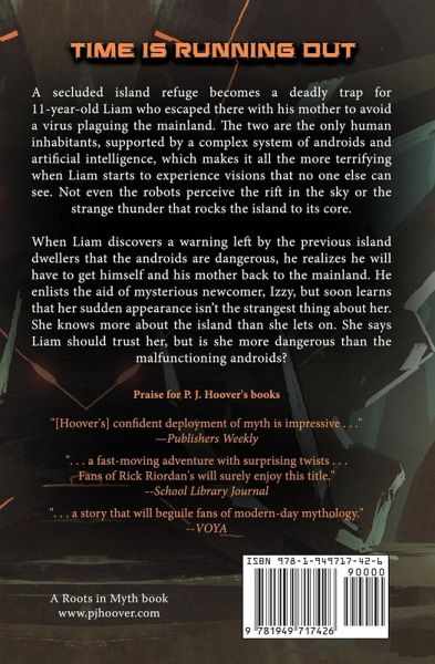 There's only one way off the island . . . A secluded island refuge becomes a deadly trap for 11-year-old Liam who escaped there with his mom to avoid a virus plaguing the mainland. The two are the only human inhabitants, supported by a complex system of androids and artificial intelligence, which makes it all the more terrifying when Liam starts to experience visions that no one else can see. Not even the robots perceive the rift in the sky or the strange thunder that rocks the island to its core. When Liam discovers a warning left by the previous island dwellers that the androids are dangerous, he realizes he will have to get himself and his mom back to the mainland. He enlists the aid of mysterious newcomer, Izzy, but soon learns that her sudden appearance isn't the strangest thing about her. She knows more about the island than she lets on. She says Liam should trust her, but is she more dangerous than the malfunctioning androids? Black Mirror meets Westworld in this action-packed adventure by P. J. Hoover! Check out these other titles by P. J. Hoover:Curse of King Tut Book 1: The Knife of Osiris Curse of King Tut Book 2: The Serpent of Chaos The Forgotten Worlds Book 1: The Emerald Tablet The Forgotten Worlds Book 2: The Navel of the World The Forgotten Worlds Book 3: The Necropolis The Hidden Code The Curse of Hera