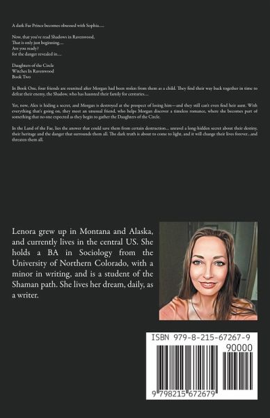 A dark Fae Prince becomes obsessed with Sophia….. Now, that you've read Shadows in Ravenwood, That is only just beginning…. Are you ready? for the danger revealed in…. Daughters of the Circle Witches In Ravenwood Book Two In Book One, four friends are reunited after Morgan had been stolen from them as a child. They find their way back together in time to defeat their enemy, the Shadow, who has haunted their family for centuries…. Yet, now, Alex is hiding a secret, and Morgan is destroyed at the prospect of losing him—and they still can't even find heir aunt. With everything that's going on, they meet an unusual friend, who helps Morgan discover a timeless romance, where she becomes part of something that no one expected as they begin to gather the Daughters of the Circle. In the Land of the Fae, lies the answer that could save them from certain destruction… unravel a long-hidden secret about their destiny, their heritage and the danger that surrounds them all. The dark truth is about to come to light, and it will change their lives forever…and threaten them all.