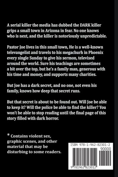 A serial killer the media has dubbed the DARK killer grips a small town in Arizona in fear. No one knows who is next, and the killer is notoriously unpredictable. Pastor Joe lives in the small town. He's a well-known televangelist and travels to his megachurch in Phoenix every single Sunday to give his sermon, televised around the world. Sure, his teachings are sometimes a bit over the top, but he's a family man, generous with his time and money, and supports many charities. But Joe has a dark secret, and no one, not even his family, knows how deep that secret runs. But that secret is about to be found out. Will Joe be able to keep it? Will the police be able to find the killer? You won't be able to stop reading until the final page of this story filled with dark horror.* *Contains violent sex, graphic scenes, and other material that may be disturbing to some readers.