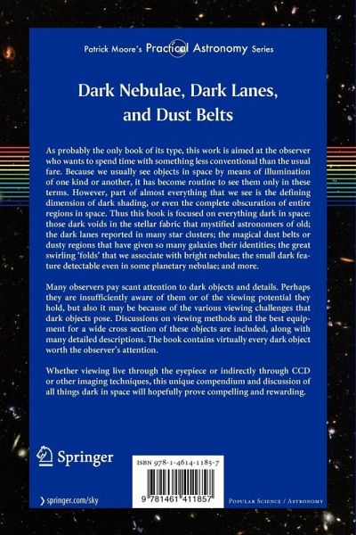 The Nature of Unlit Gases and Dust, and Their Place in the Universe.- Defining Our Viewing Parameters and Methods.- Dark Nebulae.- Dark and Dusty Regions in Bright Diffuse Nebulae.- Dark Lanes in Star Clusters.- Dust Belts and Dark Features in Galaxies.- Dark Regions in Planetary Nebulae.- A Few Last Words.