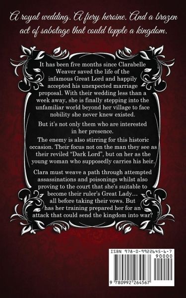A royal wedding. A fiery heroine. And a brazen act of sabotage that could topple a kingdom. It has been five months since Clarabelle Weaver saved the life of the infamous Great Lord and happily accepted his unexpected marriage proposal. With their wedding less than a week away, she is finally stepping into the unfamiliar world beyond her village to face nobility she never knew existed. But it's not only them who are interested in her presence. The enemy is also stirring for this historic occasion. Their focus not on the man they see as their reviled "Dark Lord", but on her as the young woman who supposedly carries his heir. Clara must weave a path through attempted assassinations and poisonings whilst also proving to the court that she's suitable to become their ruler's Great Lady… all before taking their vows. But has her training prepared her for an attack that could send the kingdom into war?