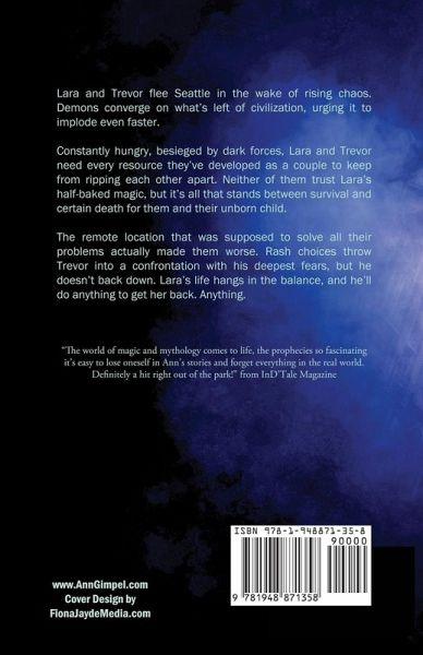 Lara and Trevor flee Seattle in the wake of rising chaos. Demons converge on what's left of civilization, urging it to implode even faster. Constantly hungry, besieged by dark forces, Lara and Trevor need every resource they've developed as a couple to keep from ripping each other apart. Neither of them trust Lara's half-baked magic, but it's all that stands between survival and certain death for them and their unborn child. The remote location that was supposed to solve all their problems actually made them worse. Rash choices throw Trevor into a confrontation with his deepest fears, but he doesn't back down. Lara's life hangs in the balance, and he'll do anything to get her back. Anything.