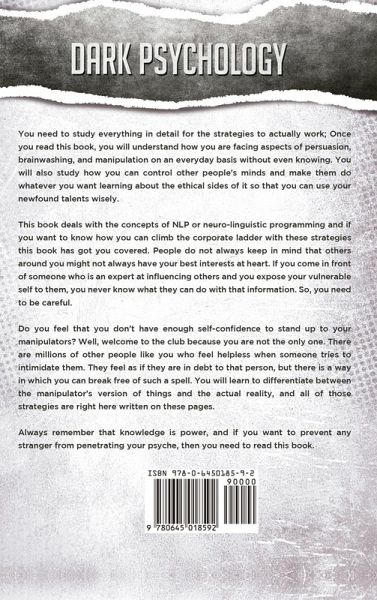 You need to study everything in detail for the strategies to actually work; Once you read this book, you will understand how you are facing aspects of persuasion, brainwashing, and manipulation on an everyday basis without even knowing. You will also study how you can control other people's minds and make them do whatever you want learning about the ethical sides of it so that you can use your newfound talents wisely. This book deals with the concepts of NLP or neuro-linguistic programming and if you want to know how you can climb the corporate ladder with these strategies this book has got you covered. People do not always keep in mind that others around you might not always have your best interests at heart. If you come in front of someone who is an expert at influencing others and you expose your vulnerable self to them, you never know what they can do with that information. So, you need to be careful. Do you feel that you don't have enough self-confidence to stand up to your manipulators? Well, welcome to the club because you are not the only one. There are millions of other people like you who feel helpless when someone tries to intimidate them. They feel as if they are in debt to that person, but there is a way in which you can break free of such a spell. You will learn to differentiate between the manipulator's version of things and the actual reality, and all of those strategies are right here written on these pages. Always remember that knowledge is power, and if you want to prevent any stranger from penetrating your psyche, then you need to read this book.