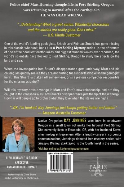 Police chief Matt Horning thought life in Port Stirling, Oregon was returning to normal after the earthquake. He was dead wrong. One of the world's leading geologists, British Lord Phineas Stuart, has gone missing in this classic whodunit, book 4 in A Port Stirling Mystery series. In the aftermath of one of the deadliest earthquakes and biggest tsunami waves ever recorded, the world's scientists have flocked to Port Stirling, Oregon to study the effects on the land and sea. When the investigation into Stuart's disappearance gets underway, Matt and his colleagues quickly realize they are not hurting for suspects who wish the geologist harm. Has Stuart just taken off somewhere, or is a jealous competitor responsible for the missing scientist? Will this mystery drive a wedge in Matt and Fern's new relationship, and are they caught in the crosshairs? Is Lord Stuart's disappearance just the tip of the iceberg? How far will people go to protect what they love when the stakes are high?