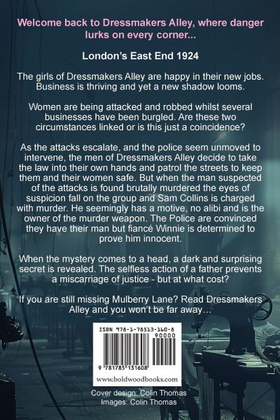 The next explosive instalment in the Dressmakers' Alley series from bestseller Rosie Clarke Welcome back to Dressmakers' Alley, where danger lurks on every corner... London's East End 1924 The girls of Dressmakers' Alley are happy in their new jobs. Business is thriving and yet a new shadow looms. Women are being attacked and robbed whilst several businesses have been burgled. Are these two circumstances linked or is this just a coincidence? As the attacks escalate, and the police seem unmoved to intervene, the men of Dressmakers' Alley decide to take the law into their own hands and patrol the streets to keep them and their women safe. But when the man suspected of the attacks is found brutally murdered the eyes of suspicion fall on the group and Sam Collins is charged with murder. He seemingly has a motive, no alibi and is the owner of the murder weapon. The Police are convinced they have their man but fiancé Winnie is determined to prove him innocent. When the mystery comes to a head, a dark and surprising secret is revealed. The selfless action of a father prevents a miscarriage of justice - but at what cost? If you are still missing Mulberry Lane? Read Dressmakers' Alley and you won't be far away... Praise for Rosie Clarke: 'Brilliant read. Wonderful characters that draw you into Harpers world. Thoroughly enjoyable.' - Kitty Neale 'When it comes to writing sagas, Rosie Clarke is up there with some of the best in the business' - Bookish Jottings 'Rosie Clarke books first class author love every one of her books' - Reader Review 'Murder, fraud, sculdugery in the work place, and romance. Who could ask for more' - Reader Review 'Great characters and it was a page turner, I will recommend this book to others' - Reader Review