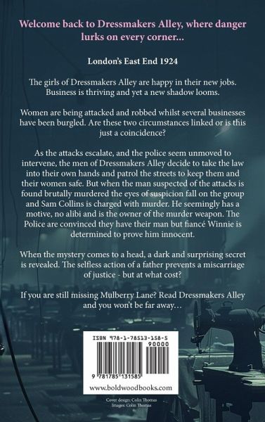 The next explosive instalment in the Dressmakers' Alley series from bestseller Rosie Clarke Welcome back to Dressmakers' Alley, where danger lurks on every corner... London's East End 1924 The girls of Dressmakers' Alley are happy in their new jobs. Business is thriving and yet a new shadow looms. Women are being attacked and robbed whilst several businesses have been burgled. Are these two circumstances linked or is this just a coincidence? As the attacks escalate, and the police seem unmoved to intervene, the men of Dressmakers' Alley decide to take the law into their own hands and patrol the streets to keep them and their women safe. But when the man suspected of the attacks is found brutally murdered the eyes of suspicion fall on the group and Sam Collins is charged with murder. He seemingly has a motive, no alibi and is the owner of the murder weapon. The Police are convinced they have their man but fiancé Winnie is determined to prove him innocent. When the mystery comes to a head, a dark and surprising secret is revealed. The selfless action of a father prevents a miscarriage of justice - but at what cost? If you are still missing Mulberry Lane? Read Dressmakers' Alley and you won't be far away... Praise for Rosie Clarke: 'Brilliant read. Wonderful characters that draw you into Harpers world. Thoroughly enjoyable.' - Kitty Neale 'When it comes to writing sagas, Rosie Clarke is up there with some of the best in the business' - Bookish Jottings 'Rosie Clarke books first class author love every one of her books' - Reader Review 'Murder, fraud, sculdugery in the work place, and romance. Who could ask for more' - Reader Review 'Great characters and it was a page turner, I will recommend this book to others' - Reader Review