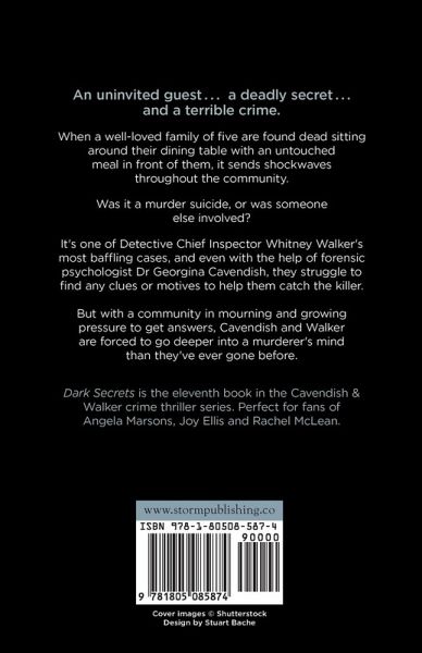 An uninvited guest... a deadly secret... and a terrible crime. When a well-loved family of five are found dead sitting around their dining table with an untouched meal in front of them, it sends shockwaves throughout the community. Was it a murder suicide, or was someone else involved? It's one of DCI Whitney Walker's most baffling cases, and even with the help of forensic psychologist Dr Georgina Cavendish, they struggle to find any clues or motives to help them catch the killer. But with a community in mourning and growing pressure to get answers, Cavendish and Walker are forced to go deeper into a murderer's mind than they've ever gone before. Dark Secrets is the eleventh book in the Cavendish & Walker series. Perfect for fans of Angela Marsons, Joy Ellis and Rachel McLean. What readers are saying about Dark Secrets: 'Brilliant read. This is a must if you love a good story. I've read all the Cavendish & Walker books, all well written and brilliant plots in all of them. Can't wait until the next book comes out.' Reader review, ¿¿¿¿¿ 'Clever, exciting and gripping from the start... this is possibly the best so far! I love the twists and turns in the plot. Sally is a master at this .' Reader review, ¿¿¿¿¿ 'Another winner... keeps you enthralled by its ever-changing "who done it" storyline.' Reader review, ¿¿¿¿¿ 'Loved it. Best yet. And I don't want to read another series until I've finished this. Brilliant read. Next one please.' Reader review, ¿¿¿¿¿ 'You've done it again, Sally... another page-turner. I really couldn't put this one down.' Reader review, ¿¿¿¿¿
