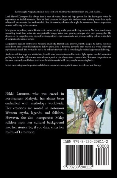 Returning to Niapachad Island, these lords will find their fated match from The Dark Realm... Lord Harold Davenport has always been a man of reason. Duty and logic govern his life, leaving no room for superstition or foolish fantasies. Tales of dark creatures lurking in the shadows were nothing more than myths whispered to entertain the weak-minded. But his certainty shatters the night he encounters her-a mysterious woman unlike any he has ever met. It begins as an ordinary act of kindness. A chance meeting at the port. A fleeting moment. Yet from that instant, something inside him shifts. An unexplainable hunger takes root, growing stronger with each passing day. His dreams are no longer his own, plagued by visions of her-her voice, touch, and presence calling to him in the dark. A temptation he cannot escape. Desperate to reclaim control over his mind and body, Harold seeks answers, but the deeper he delves, the more he is drawn into a world he refuses to believe exists. Fate is far more powerful than reason in a world where the supernatural is real. The woman he met is no ordinary traveler-she is something far more dangerous and alluring. As desire and fear wage war within him, Harold must make an impossible choice: fight against the dark seduction pulling him into the unknown or surrender to a passion that threatens to consume him. But some temptations are far more potent than will alone. And once the shadows take hold, there may be no turning back... In this captivating novella, passion and darkness intertwine, testing the limits of love, desire, and destiny.