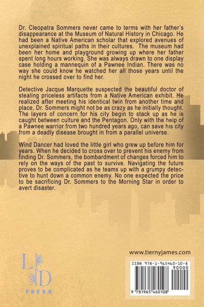 Dr. Cleopatra Sommers never came to terms with her father's disappearance at the Museum of Natural History in Chicago. He had been a Native American scholar that explored avenues of unexplained spiritual paths in their cultures. The museum had been her home and playground growing up when her father spent long hours working. She was always drawn to one display case holding a mannequin of a Pawnee Indian. There was no way she could know he watched her all those years until the night he crossed over to find her. Detective Jacque Marquette never expected to get involved with a beautiful doctor suspected of stealing priceless artifacts from a Native American Exhibit at the Museum of Natural History. Meeting his identical twin from another time and place added a layer of concern when he discovered the truth about his powers. Only with the help of a Pawnee warrior from two hundred years ago could help him save his city from a deadly disease brought in from a parallel universe. Wind Dancer had loved the little girl who grew up before him for years. When he decided to cross over to prevent his enemy from finding Dr. Sommers, he had no way of knowing the bombardment of changes that would assault his view of reality. Navigating the future proves to be complicated as he teams up with a grumpy detective to hunt down a common enemy. The unexpected price to saving humanity would be to sacrifice Dr. Sommers to the Morning Star in order to avert disaster.
