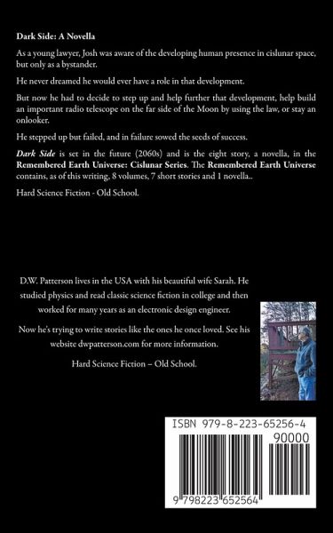 Dark Side: A Novella As a young lawyer, Josh was aware of the developing human presence in cislunar space, but only as a bystander. He never dreamed he would ever have a role in that development. But now he had to decide to step up and help further that development, help build an important radio telescope on the far side of the Moon by using the law, or stay an onlooker. He stepped up but failed, and in failure sowed the seeds of success. Dark Side is set in the future (2060s) and is the eight story, a novella, in the Remembered Earth Universe: Cislunar Series. The Remembered Earth Universe contains, as of this writing, 8 volumes, 7 short stories and 1 novella.. While part of a series, Dark Side, may be read as a stand-alone. Hard Science Fiction - Old School.