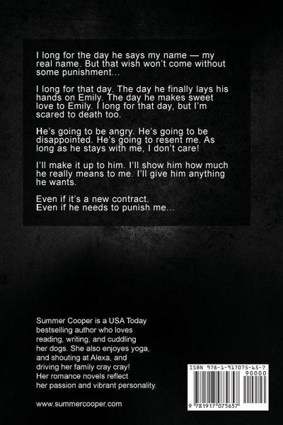 Enjoy this steamy good girl gone bad love story by USA Today Bestselling sexy billionaire romance author Summer Cooper! I long for the day he says my name - my real name. But that wish won't come without some punishment... I long for that day. The day he finally lays his hands on Emily. The day he makes sweet love to Emily. I long for that day, but I'm scared to death too. He's going to be angry. He's going to be disappointed. He's going to resent me. As long as he stays with me, I don't care! I'll make it up to him. I'll show him how much he really means to me. I'll give him anything he wants. Even if it's a new contract. Even if he needs to punish me... READ THE WHOLE SERIES NOW: 1. Dark Desire 2. Dark Rules 3. Dark Secret 4. Dark Time 5. Dark Truth Books related to this series: Winning Her Claiming Her Protecting Her This is an adult only steamy contemporary romance, appealing to readers who love fated mates, billionaire romance, forbidden romance and sizzling hot romances with a twist. Perfect for fans of Kat T. Masen, Marni Mann, Roxy Sloane, Becka Mack, Ava Gray and J.T. Geissinger. This is the large print version, created specifically for low-sight readers. Enjoy!