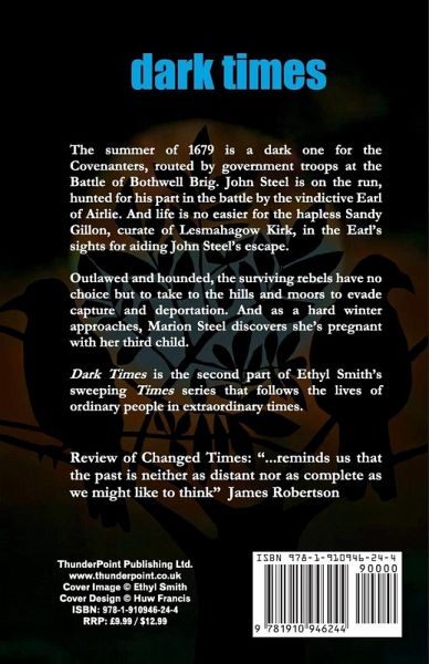 The summer of 1679 is a dark one for the Covenanters, routed by government troops at the Battle of Bothwell Brig. John Steel is on the run, hunted for his part in the battle by the vindictive Earl of Airlie. And life is no easier for the hapless Sandy Gillon, curate of Lesmahagow Kirk, in the Earl's sights for aiding John Steel's escape. Outlawed and hounded, the surviving rebels have no choice but to take to the hills and moors to evade capture and deportation. And as a hard winter approaches, Marion Steel discovers she's pregnant with her third child. Dark Times is the second part of Ethyl Smith's sweeping Times series that follows the lives of ordinary people in extraordinary times.