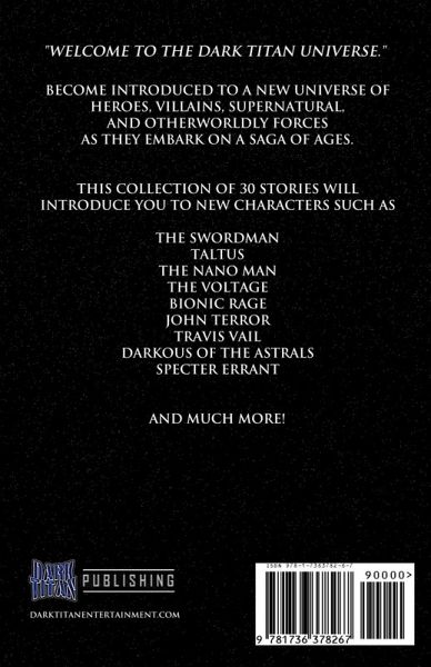 "The Introduction to the Dark Titan Universe!" Welcome to a new universe of heroes and villains with thirty stories across the Dark Titan Universe. From such characters like The Swordman, Taltus, The Nano Man, Commander Norland, The Beast, The Voltage, Cinderella, Travis Vail, Yonderers, Doctor Dark, and many more. Learn who they are as you embark on the long journey of the Saga of Ages.