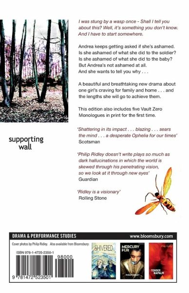It was a very hot day - dazzling sunshine! - and Mum - she was wiping sweat from her neck. No, not wiping. Dabbing . . . Dab . . . Dab. Mum was a beauty. Not like me. And don't tell me I am because you'll be lying and I won't thank you for it. Not today. Not when this whole thing - us, here - is about me telling the truth. The latest from Philip Ridley is a beautiful, breathtaking new drama about one girl's craving for family and home, and the lengths she will go to achieve them. Dark Vanilla Jungle embarked on a national tour of Great Britain in spring 2014. This edition also features a…mehr