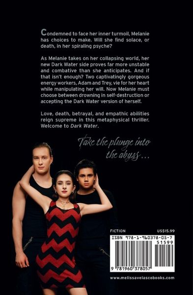 Condemned to face her inner turmoil, Melanie has choices to make. Will she find solace, or death, in her spiraling psyche? As Melanie takes on her collapsing world, her new Dark Water side proves far more unstable and combative than she anticipates. And if that isn't enough? Two captivatingly gorgeous energy workers, Adam and Trey, vie for her heart while manipulating her will. Now Melanie must choose between drowning in self-destruction or accepting the Dark Water version of herself. Love, death, betrayal, and empathic abilities reign supreme in this metaphysical thriller. Welcome to Dark Water. Take the plunge into the abyss . . .