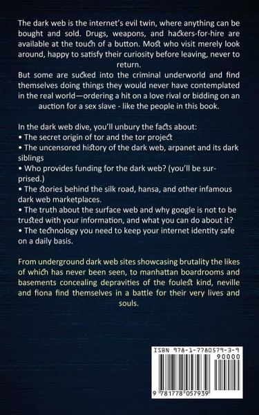 The dark web is the internet's evil twin, where anything can be bought and sold. Drugs, weapons, and hackers-for-hire are available at the touch of a button. Most who visit merely look around, happy to satisfy their curiosity before leaving, never to return. But some are sucked into the criminal underworld and find themselves doing things they would never have contemplated in the real world-ordering a hit on a love rival or bidding on an auction for a sex slave - like the people in this book. In the dark web dive, you'll unbury the facts about:he secret origin of tor and the tor project The uncensored history of the dark web, arpanet and its dark siblings Who provides funding for the dark web? (you'll be surprised.) The stories behind the silk road, hansa, and other infamous dark web marketplaces. The truth about the surface web and why google is not to be trusted with your information, and what you can do about it? The technology you need to keep your internet identity safe on a daily basis. From underground dark web sites showcasing brutality the likes of which has never been seen, to manhattan boardrooms and basements concealing depravities of the foulest kind, neville and fiona find themselves in a battle for their very lives and souls.
