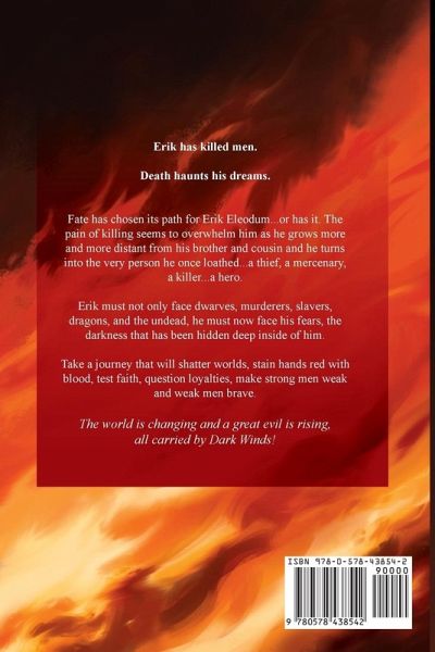 Erik has killed men. Their deaths haunt his dreams. He sees visions of his tortured family every time he closes his eyes. His only hope now is to continue to push forward, pray for the souls of the men he has killed, pray that the dreams of the dead will one day stop, and pray that his family is all right, that he will one day see his mother and father and little sisters again, just as he left them. He never wished for adventure, never wished for fame or fortune, but it seems they will come his way regardless. As he travels with men he doesn't trust and dwarves who seemingly do not trust him, he tries to hold on to who he is, who he was, who he wants to be. The only people he might truly find solace in -- his brother Befel and his cousin Bryon -- are so self-absorbed they have no time for him. Erik will travel into new lands and meet new people. His quest for the Lord of the East's heirloom in some ancient, lost dwarvish city will shatter his world. He will have to rebuild that world, everything he knows, only to have it shattered again. He will not only fight men and monsters, but he must fight evil, death, hatred, and darkness. And as Erik continues to wonder how much more blood will stain his hands, dark clouds loom overhead, carried by dark winds.