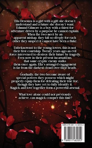 Ella Desouza has never felt whole, with a magick she possesses and has no idea how she got it. When she comes in contact with a boy who she feels an immense connection with instantly, secrets begin to unravel. Her life never remained the same. Edmund Gilmore has always been an adventurer. He decides to take the risk of crashing uninvitedly into the Desouza's mansion. As fate would have it, he instantly forgets the reason for climbing a wall full of thorns. Edmund falls in love with Ella. Now he must find a way to make an engaged Ella his. Twenty years ago, tragedy befell two destined souls. Unable to overcome the darkness, they surrendered to the defeat with love blossoming in their hearts. It seemed like the end for this epic love story until these two souls emerged once again in a blaze of glory. These souls reincarnated to fight the evil that once defeated them must find each other again. Now two different people with no idea of the life they once lived, must find each other and put an end to the darkness that once destroyed them. As they fall in love once again, they embark on an adventure to discover the power they possess What happens when the man behind the destruction of their first lives is closer than they could have imagined? What happens when the evil that lurks in the dark is someone that seems trustworthy? Magic has failed them once before...Will it be their liberator this time?